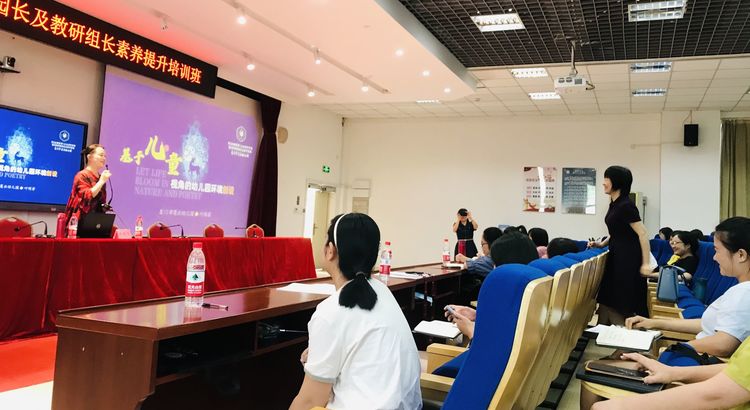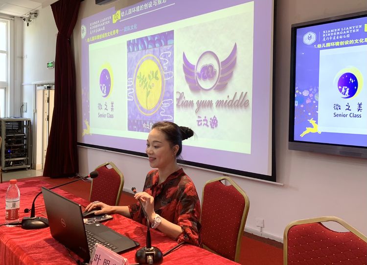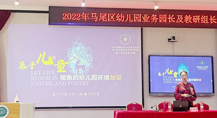 2022年7月11日上午,我们聆听了来自厦门市莲云幼儿园叶明芳园长的讲座《基于儿童视角的幼儿园环境》。讲座一开始,叶园长带来了莲云幼儿园的宣传片,用诗情画意般的阐述,将大家带入孕育真善美、滋养知情行的幼儿园里,感受园所的文化底蕴与内涵。