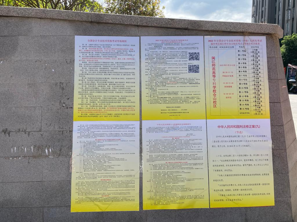 大赢家体育app下载仓山校区于2022年9月3日-5日同时承接了“2022年福建省水利厅直属事业单位公开招聘工作人员考试”(纸质)、“2022年福建省退役军人事务厅公开招聘工作人员笔试”(纸质)、“2022年全国会计专业技术中级资格考试”(机考)。为了确保考试顺利进行,考前考务人员根据考务手册的要求对考场环境进行布置(设置了路标、路牌、警戒线等)、考试所需材料准备。