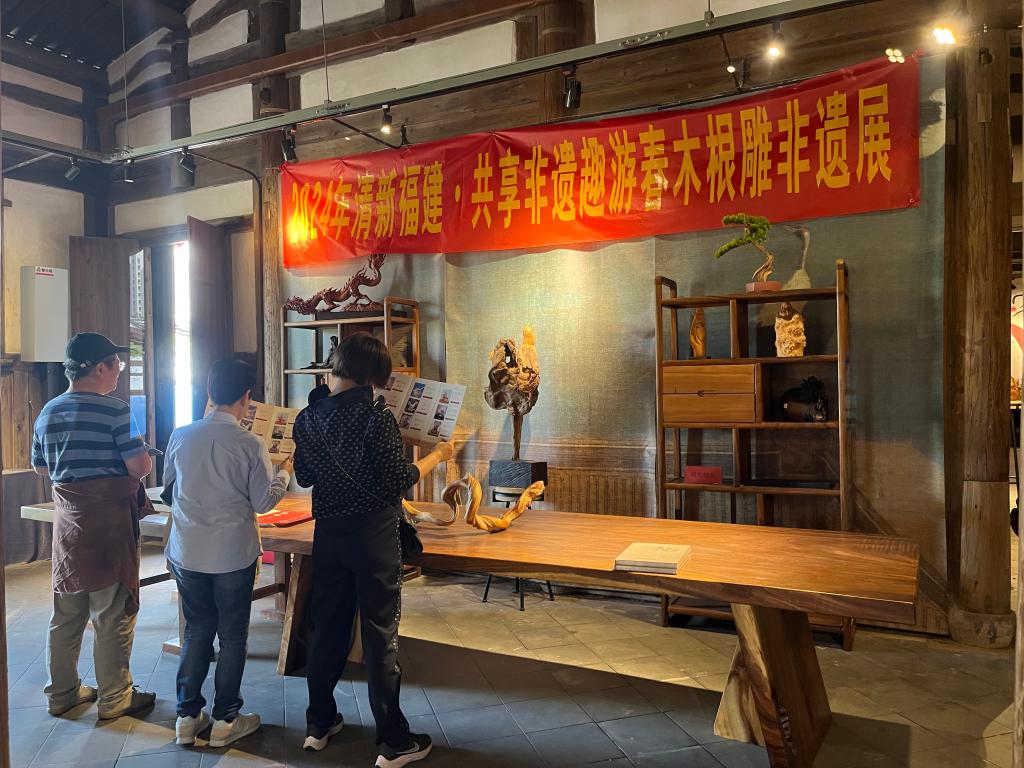 随后,老师们参观了闽侯根雕艺术展。闽侯木雕制作技艺是福州市第二批市级非物质文化遗产代表性项目,闽侯是“中国根艺之乡”。根雕展馆内展品既传承了古代精雕细镂之品质,又融入现代高精密度雕工,别具风采,大气传神,老师们纷纷叹为观止,感受到中国传统文化底蕴之博大精深。