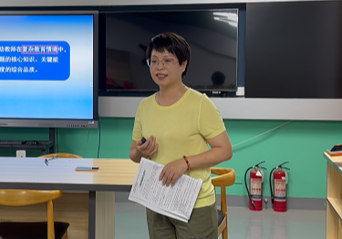 8月21日下午,福建师大附中生物教师、福州市德育研究工作室成员、福州市班主任核心素养大赛导师林霞老师,她以生动风趣的表达方式、别出心裁的道具展示以及深厚的专业素养向各位新教师进行了内容丰富且实用的岗前指导。林老师将生物学、心理学、社会心理学等多个学科的知识进行交叉融合,带领新教师们认识了个体(教师或班主任)在不同角色和情境下的个性表现和行为特征,从而更新大家对自身角色形象、思维方式、行为模式的认识,为新教师们成为一名更专业,更合格的教育⼯作者提供了切实有效的帮助。