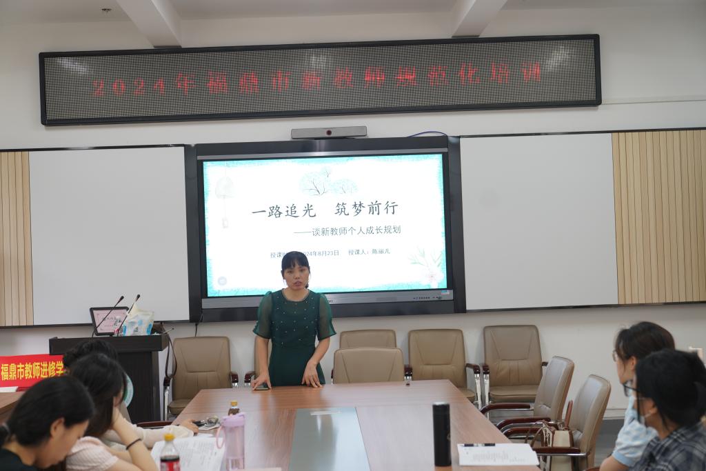 福鼎市初中化学名师工作室领衔人林丽丽老师开设《“育”践未来——新入职教师培训及交流》讲座。