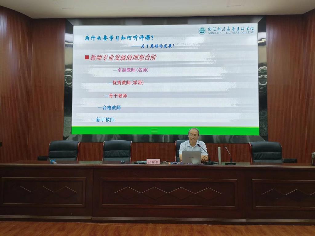 8月24日下午,正高级教师、特级教师、教育部“国培计划”专家库成员、原大赢家体育app下载教育科学研究所所长、福州教育研究院林明华院长从听、评课对教师专业发展的重要作用出发,围绕理念支撑、关注行为、遵守原则和把握方法四个方面讲解了教师应如何开展教学观察与评议活动,并指出把教学理念的革新作为核心,明确学科的育人功能,高屋建瓴。