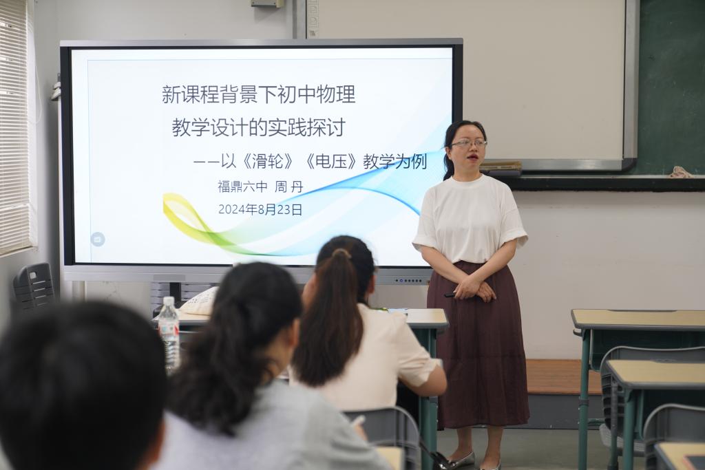 福鼎市初中物理名师工作室领衔人、福鼎市第六中学物理教研组长周丹老师开设《新课程背景下初中物理教学设计的实践探讨》讲座。