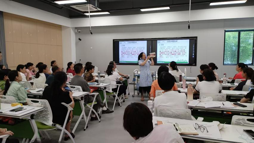 按照福州市医保局的要求,学校继续教育学院和医护学院经过1个多月的磨合研讨与精心筹备,对这次培训的内容进行了改革与更新,根据《福州市长期护理保险护理服务项目及标准的通知》(榕医保规〔2024〕1号)文件和《健康照护师(长期照护师)国家职业标准》的内容,将课程分为生活照护、基础照护、对症护理、功能维护和心理照护5个模块,涵盖了我市长护险基本服务项目41项(其中生活照料类服务项目26项,医疗护理类服务项目15项),计40学时。培训采用理论与实操并行的讲授方式,让学员的理论知识水平和动手实践能力有机结合,促进培训效果的转化,提升针对性与实效性。