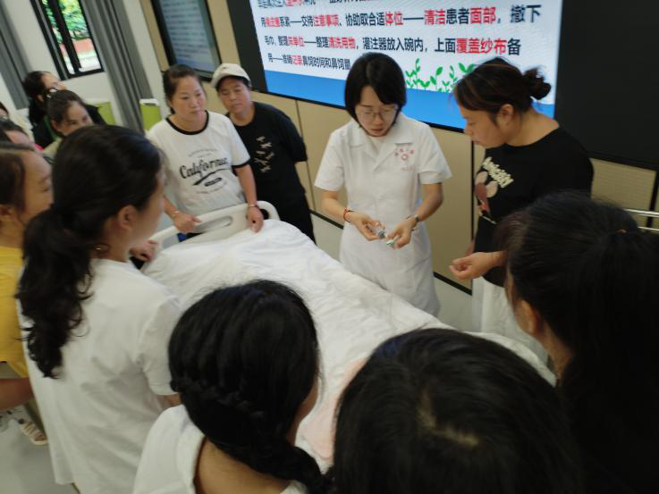 此次培训涵盖了生命体征测量、物理降温;压疮护理、安宁照护;身体活动功能照护;烧伤、跌倒护理;给药服务、糖尿病护理;排泄照护;清洁护理、床单位整理;进食照护;叩背、排痰、灌肠;皮肤护理、更换衣裤等内容。培训采用理论与实操并行的讲授方式,让学员的理论知识水平和动手实践能力有机结合,促进培训效果的转化,提升针对性与实效性。