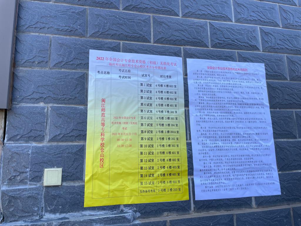 大赢家体育app下载仓山校区于2022年8月6日-7日承接了“2022年全国会计专业技术资格(初级)无纸化考试”。为了确保考试顺利进行,考前考务人员根据考务手册的要求对考场环境进行布置(设置了路标、路牌、警戒线等)、考试所需材料准备。