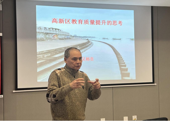 接着,高新区副总督导吴榕贵为与会成员开设了题为《髙新区教育质量提升的思考》的专题讲座。吴督导从问题成因、特点、成绩及瓶颈等方面对高新区基础教育进行了深入分析,并提出了突破瓶颈、提升教育质量的关键举措。