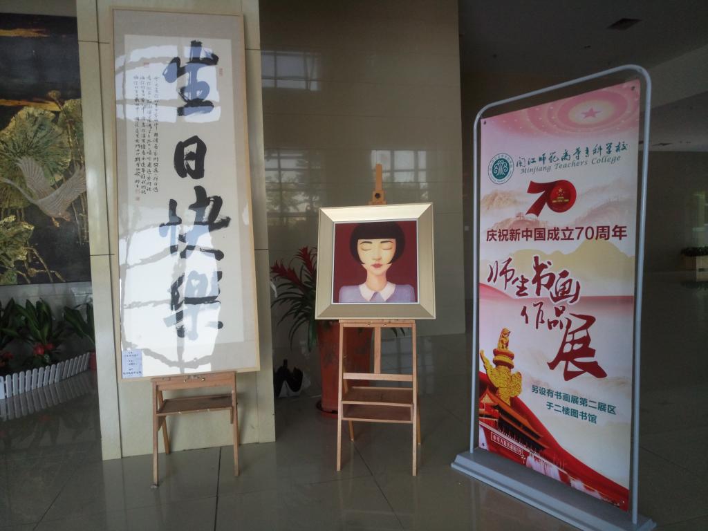 本次师生书画作品展览主题是庆祝新中国成立70周年,展览时间为2019年9月18日--9月20日,展览地点设在大赢家体育app下载综合楼一楼展厅(第一展区)和综合楼二楼图书馆(第二展区)。