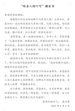 古人云,家书抵万金。在跃然纸上的浓浓情意中,家风家训也通过家书这座桥梁不断传递升华。此次主题党日活动中,党员干部们用一段话或几句话,用接地气、有温度的语言,通过一封封微家书,表达自己对亲人的深情嘱托、廉洁从政的期盼,表达对长辈的感恩、对爱人的忠告、对子女的期许,让“给亲人的叮咛”像一股清流,在家人之间传递挚爱真情、传播廉洁理念。此外,党员干部及其家庭成员将弘扬传统美德、体现时代要求,符合核心价值、贴近生活实际的廉洁自律、清廉治家格言、警句,作为自己的座右铭,并与支部党员进行分享交流,让廉洁理念入脑入心。