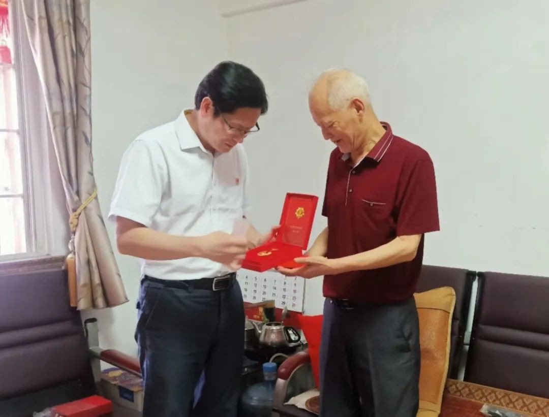 7月1日,受校党委委托,校党委委员、副校长刘翔炜带领医护学院党总支副书记陈锦香和工会副主席韦斌走访看望党龄50年以上的老党员郑国栋,并向其颁发“光荣在党50年”纪念章。