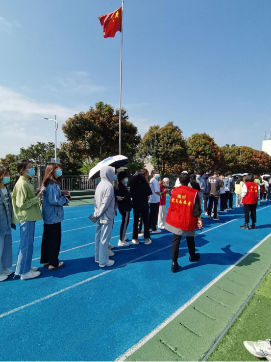 2022年3月,学校按照福州市的要求,每周开展核酸检测抽检或全员核酸检测。3月至今,每一次核酸检测,在仓山校区田径场上都可以看到化学与生物技术学院党总支党员的身影,他们积极主动参加核酸检测志愿服务,助力核酸检测安全、有序、高效的进行。