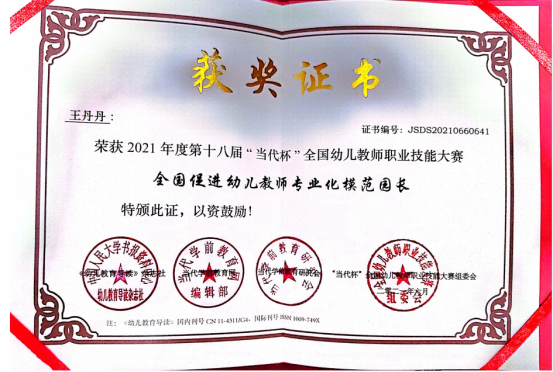 她说:“每当听到小朋友叫园长妈妈的时候,自己付出的一切都值了”。在王丹丹带领的团队努力经营下,幼儿园办得有声有色,并于2022年高分通过高新区区级示范园评估。在她看来,“起始于辛劳,收结于平淡”,这就是我们教育工作者的人生写照。