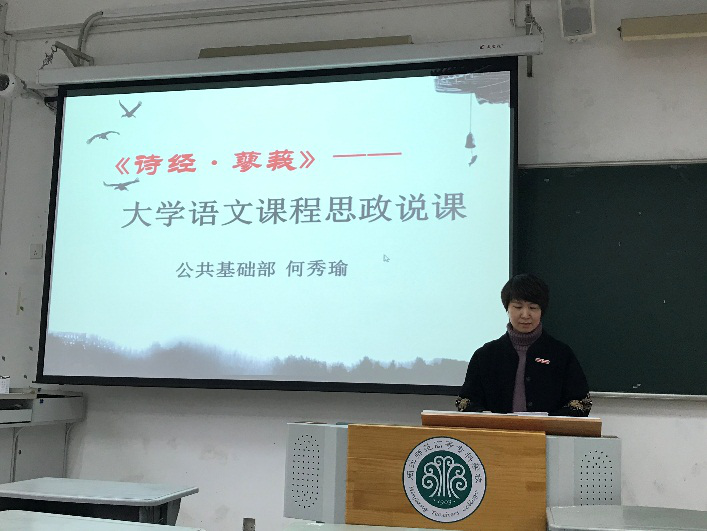 会上,语文教研室主任何秀瑜老师展示了其课程思政教学设计校级比赛二等奖作品《诗经·蓼莪》。何老师从教材、学情、教学目标等方面向在座老师讲解了《蓼莪》和“孝道”结合的课程思政设计理念和思路,老师们纷纷表示受益匪浅,并对如何将思政与自身学科专业结合起来进行研讨。会上,薛主任要求本部门全体教师,要结合本专业课程特点,深入挖掘“课程思政”元素,充实“课程思政”的教学设计,把“课程思政”和课堂教学有机融合,提高各学科教书育人的成效。