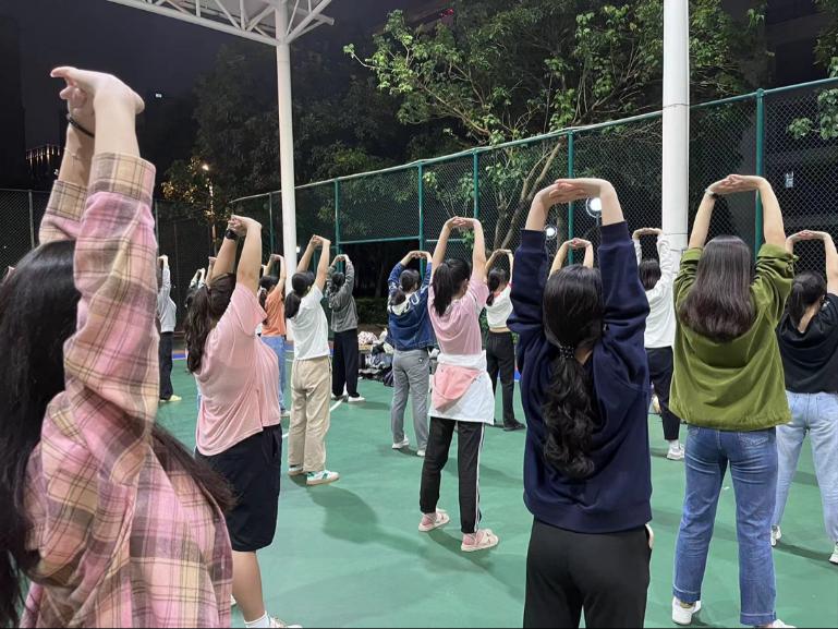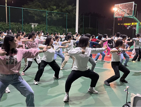 夜幕中,虽场地条件有限,但学习气氛格外浓烈。谢群喜教师和学生骨干积极教学,参演学生认真学习,全情投入,呈现出闽师专师生健康向上、不懈奋斗的体育精神。