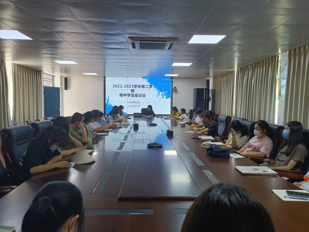 为广泛了解学生对公共基础课授课教师的满意度,全面提升教学质量,2023年5月25日下午,公共基础部在福清校区行政楼二楼会议室举行2022-2023学年第二学期福清校区期中学生座谈会,会议由创新创业教研室主任王宏主持,福清校区30余名学生代表参会。