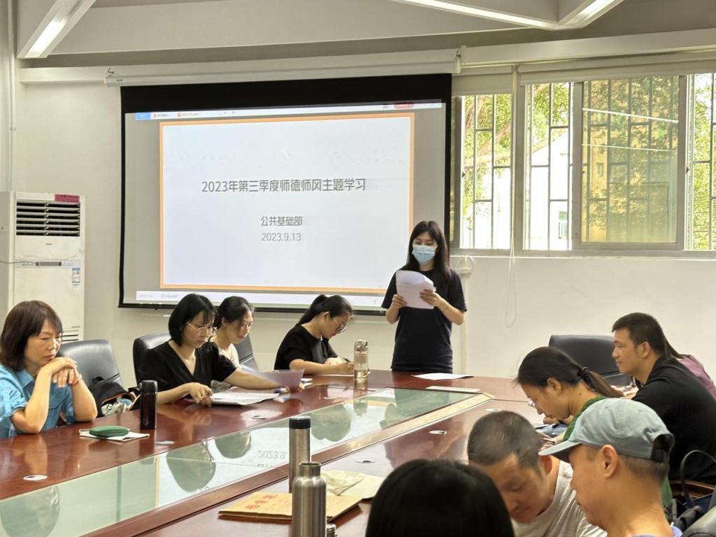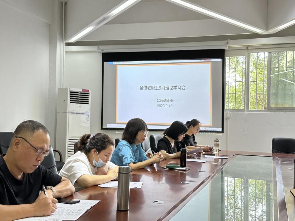 2023年9月13日下午三时许,公共基础部于仓山校区三创学院105会议室召开九月理论专题学习会议,会议内容包括“习近平总书记回信复信精神学习”、第三季度师德师风、网络安全宣传周专题学习等内容。会议由纪君主持,全体教职工出席了本次会议。