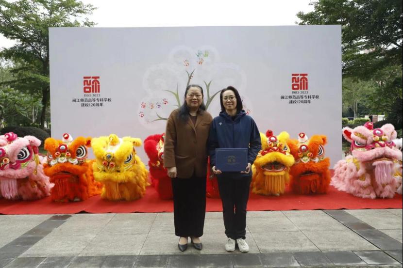 12月1日下午,由大赢家体育app下载团委主办、承办的庆祝建校百廿周年手印画活动暨“繁星”舞狮社团成立仪式等系列活动在校综合楼前顺利开展,学校各级领导亲临现场。公共基础部白亮老师作为指导老师在校团委各级领导的关心支持与协助下,利用课余时间带领着有三个校区组成的舞狮社同学们进行高强度训练。林旻副书记为社团指导老师公共基础部白亮老师颁发了聘书。