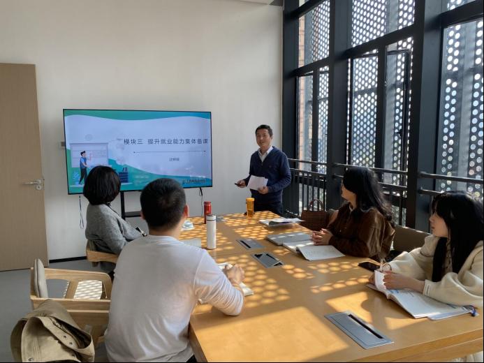 接着,沈锦城老师分享了就业指导课程中《就业能力提升》模块的授课经验和思路,陈艳老师就创新创业基础课程中《创业者和创业团队》《商业模式》模块的课程整体设计及教学案例等进行了分享,为老师们互相学习借鉴提供了宝贵的经验和启示。
