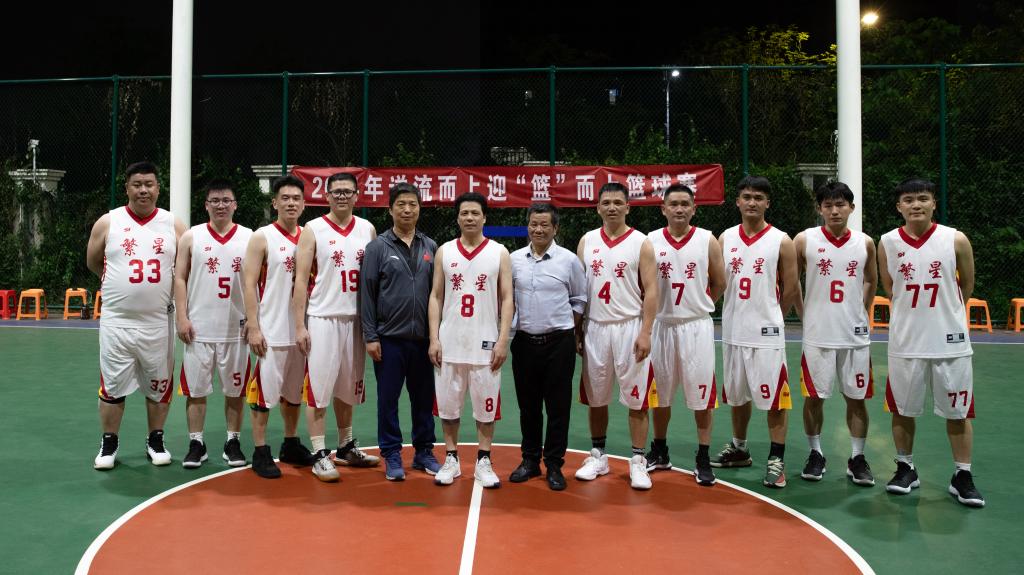 开幕式结束后,比赛正式开始。首场比赛,由繁星教工队和小学教育学院代表队展开较量。随着裁判员的一声哨响,高高抛起的篮球迅速点燃赛场师生的活力,双方队员迅速进入状态,校长杨建义为繁星教工队拿下首分。比赛中老师、同学们都奋力拼搏、积极拼抢,利用团队能力进行突破,不断得分,球场边观众们欢呼声不绝于耳,呐喊声此起彼伏,加油助威声震耳欲聋。经过近一个小时的激烈角逐,繁星教工队取得比赛胜利。赛后,师生合影留念,定格这美好瞬间。