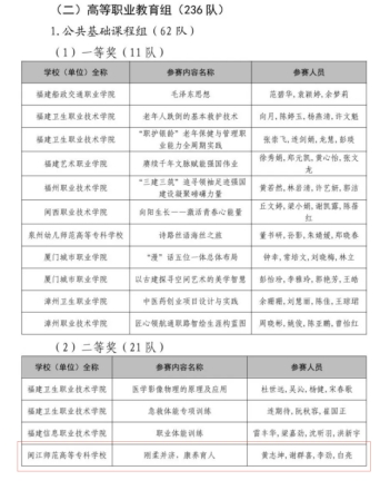 近日,在2025年福建省职业院校技能大赛教师教学能力比赛中,通识教育学院由黄志坤、谢群喜、白亮、李劲四位老师组成的体育教学团队首次参赛,凭借作品《刚柔并济,康养育人》荣获二等奖,充分展现了我院教师团队在体育与健康课程教学改革方面的创新成果。
