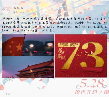 10月1日-2日,参与活动的同学通过线上方式表达对祖国的美好祝福,他们写下了观看国庆升旗的感受,写下了对美好生活的向往,写下了“铭记历史、珍爱和平、立志报国”的铮铮誓言。