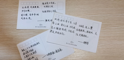 10月3日下午,在17号楼201教室开展“我向祖国写封信”手写明信片活动,向祖国表达当代大学生的心声。他们深情传颂红色经典故事,热情讴歌今天的幸福生活,抒发“强国复兴有我”、“以青春之我,创造青春之中国”的豪情壮志。