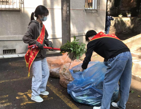 吕安娜同学组织同学到社区开展“清洁家园”志愿服务
