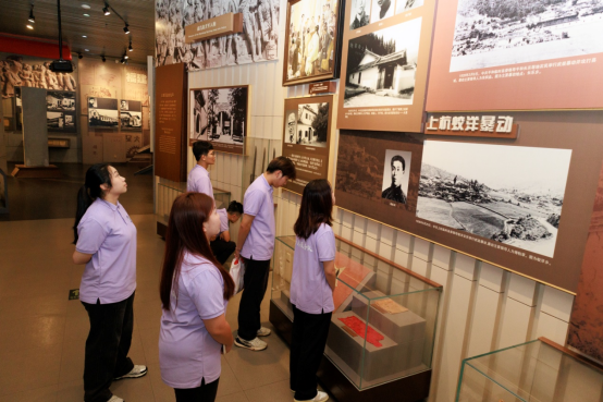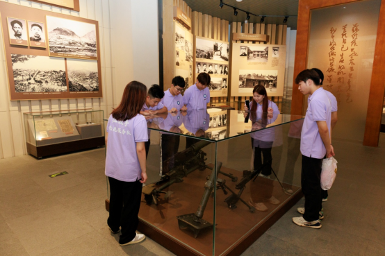 在参观过程中,学生党支部开展“红色讲堂”现场研学活动,结合闪耀着光辉的战斗和生活物品,从陈列、图像、图片中一同回顾当时的历史事件和英雄事迹,分享参观学习的体会。
