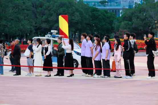 凝视着鲜艳的五星红旗,入党积极分陈紫萱表示,观看升旗仪式,接受爱国主义教育,我们青年大学生要坚定理想信念,为强国建设注入青春动能,在复兴伟业中书写青春荣光。