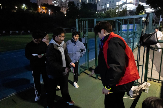 活动现场设置打卡点,有的同学专注于运动知识问答,绞尽脑汁思考答案;有的同学则在创意拍照区摆出各种有趣姿势,留下活力满满的照片。随着发令哨响,选手们沿途每完成一个打卡任务,工作人员则盖上印章。当夜色渐深,操场仍回荡着欢声笑语。