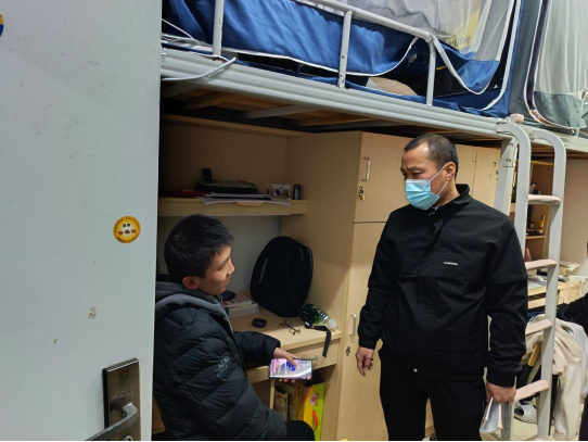 每到一间宿舍,李闽书记与同学们亲切交流,了解宿舍中存在的问题和需要帮助解决的问题,叮嘱同学们加强安全意识;了解期末复习情况、提醒学生要诚信应考等。吕志达副书记提醒同学们要注重宿舍环境建设、注重消防安全、注重财产安全,要做好期末学习规划、认真复习、诚信考试。