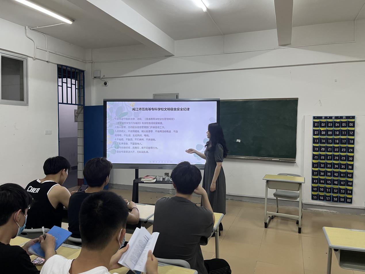 为加强学风、班风建设,引导学生树立正确的世界观、人生观和价值观,做到遵纪守法、明理修身、团结友爱、礼敬师长,4月23日晚,智能制造学院2021级辅导员王淑霞、郑佳在仓山校区组织学生学习《高等学校学生行为准则》。