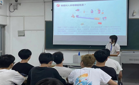 为了让同学们充分了解烟草对人体的危害以及吸烟所导致的严重后果,学生会和自律会成员深入各班级和学生宿舍宣讲,强调当下“无烟校园”的必要性,并通过ppt和宣传禁烟标语的方式,给学生敲响警钟,要求全体学生在食堂、教室、寝室等建筑物内禁止吸烟。