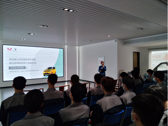 为持续推动访企拓岗促就业专项行动,贯彻落实高校毕业生来榕留榕就业创业政策,着力培养、留住适应福州市产业发展的技能人才,为福州市振兴发展提供人才支撑,深化校企合作,践行产教融合,5月25日上午,智能制造学院组织2021级新能源汽车技术专业学生赴福州五菱汽车配件制造有限公司、福州驰达汽车贸易有限公司开展专业技能劳动教育周职业素养认知交流活动。活动由院领导陈峰、吕志达带队,汽车教研室副主任杨康、实训指导教师苏杰组织现场教学。