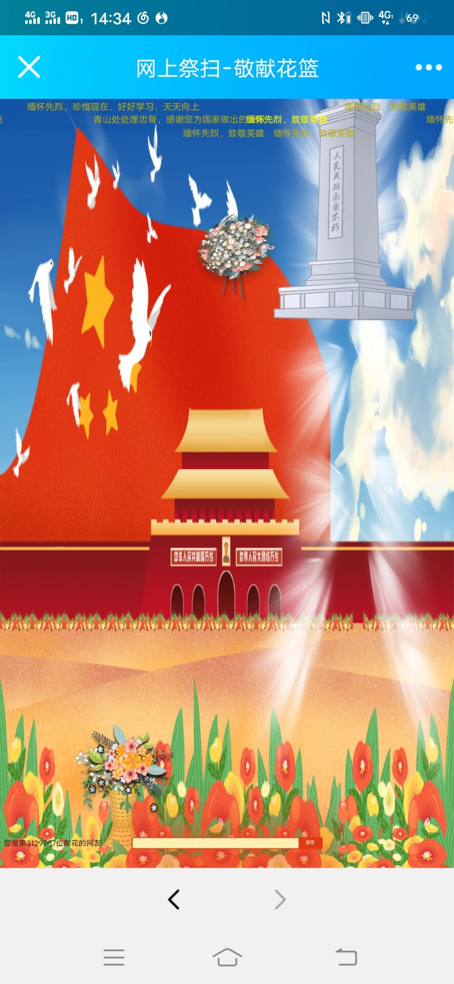 学生们通过网络向民族先烈敬虚拟鲜花,缅怀他们的英雄业绩,铭记中华民族遭受的苦难和抗争历程,珍惜今天来之不易的和平生活,表达复兴中华的豪迈心声和坚定信念,激励学生继承先烈遗志,珍惜幸福生活。