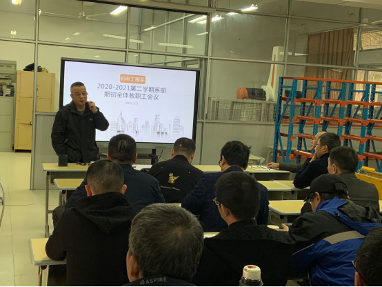 2021年3月3日下午2:00于五号楼104机电系召开了系部期初大会,本次会议由系部主任李扬新主持召开,机电工程系全体教职员工参加。