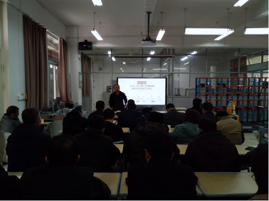 会议的开始,李扬新主任就本学期新一年的开始给全体教职工以新年的祝福,并希望系部教师们能够协调好家庭生活和工作,共同努力发展系部。随后李扬新主任就学校近期工作以及系部具体工作两块内容进行了商议。首先李扬新主任就近期校级领导人事调动情况进行说明,并分解了学校近期对系部工作的安排包括系部2021年攻坚项目的申报和评定,系部近期办公室搬迁工作的延迟等工作详情的分解。要求系部教师在完成任务时一定要快速及时地完成或者配合相关部门完成本职工作。其次就近期系部将进行的具体工作进行分解、强调,包括系部新生军训工作及军训工作中的安全注意事项、老生学期前的网络教学事项、课程思政建设、寒假期间教师企业实践事项和即将到来的学生职业技能大赛事项等工作重点进行了任务分解和分配,将具体工作分配到人以强化效果。随后系部副主任林云就18级学生顶岗实习情况进行强调,并要求毕业指导教师要督促学生,加快毕业论文的编写。最后系部副主任陈峰就20级新生军训时间、值班教师等具体情况进行强调,要求在军训期间一定要密切关注学生们的身体健康情况,做好后勤准备。