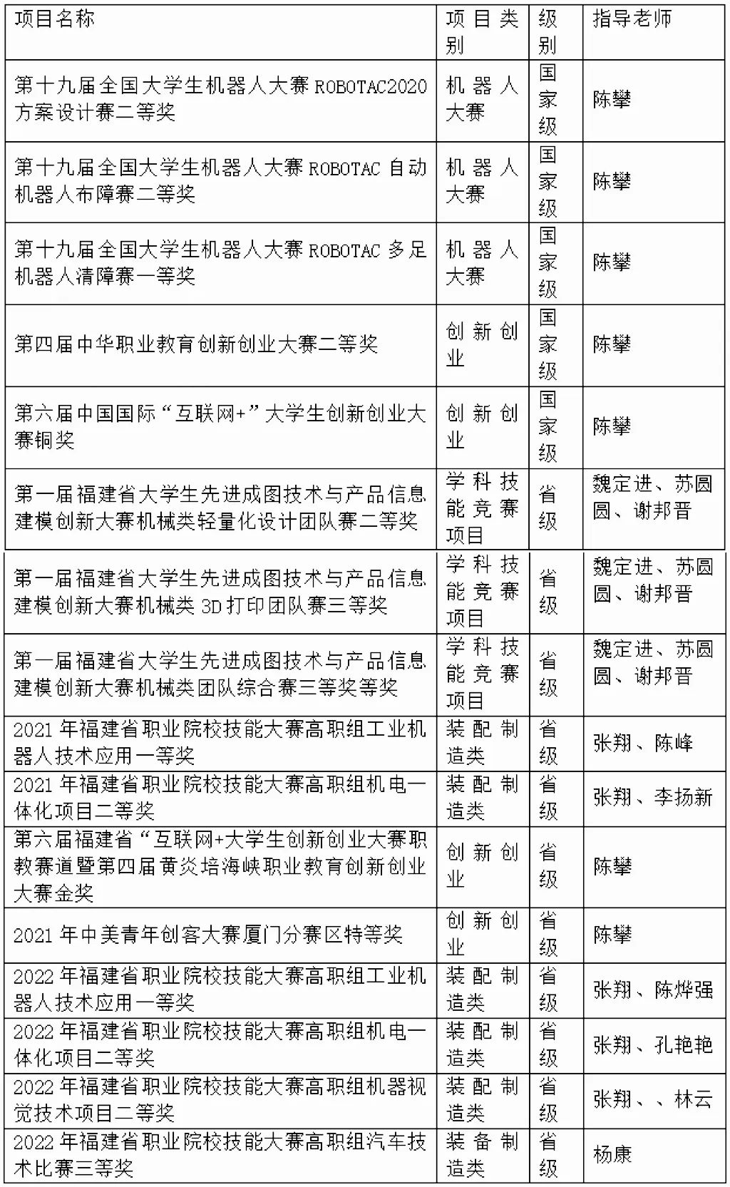 近年来学生获省级以上奖项情况(部分)