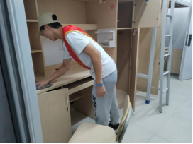 在新生报到前两天,安排志愿者们深入新生宿舍进行大扫除,给新生们一个更加干净舒适的环境。