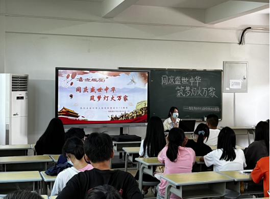 为进一步激发广大同学爱党、爱国、爱家乡的热情,引导广大同学担当时代责任,展现昂扬向上、奋发进取、团结拼搏的精神风貌。智能制造学院于9月30日中午在17号楼202教室开展“同庆盛世中华,筑梦灯火万家”迎国庆主题活动,向祖国73周年华诞献礼。