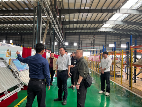 企业生产总监朱崇胜带领谢敏峰副校长一行参观了新能源汽车电池托盘、动力电池模组板端、机器人智能焊接等制造车间。