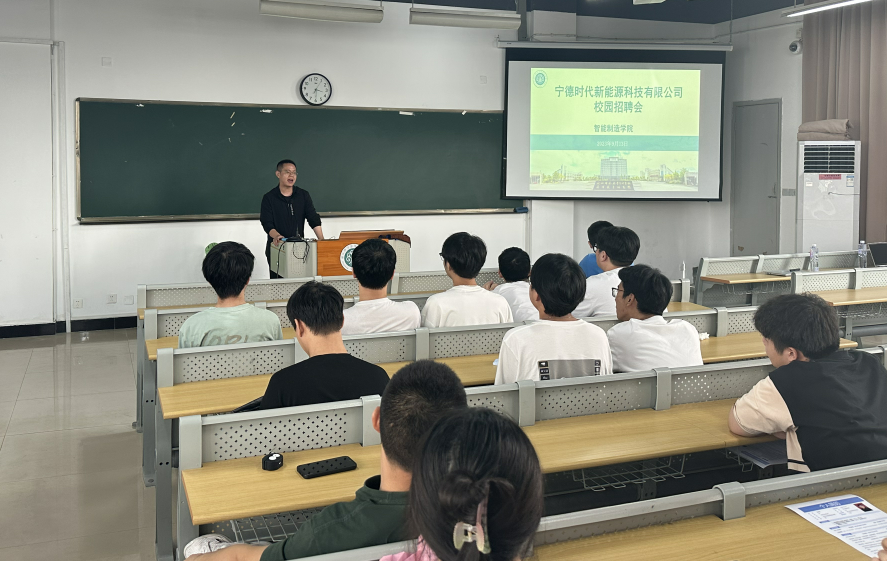 9月13日、14日,智能制造学院邀请宁德时代新能源科技股份有限公司、宁德振华振德汽车部件有限公司来校开展专场招聘宣讲活动。2024届汽车制造与试验技术、新能源汽车技术专业全体毕业生参加招聘宣讲活动,活动由汽车制造教研室副主任杨康主持。