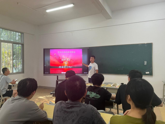 2021级工业机器人技术1班班主任陈攀对毕业生的毕业论文、顶岗实习、就业及安全等问题进行了重点强调,引导同学们坚定理想信念,鼓励同学们积极实习就业,将所学的专业知识与实践相结合,在工作岗位上努力奋斗。