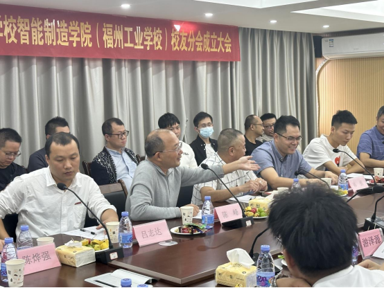 会议现场讨论氛围浓烈,李扬新院长归纳校友意见最终确定校友分会会长、副会长、秘书长人选,并宣布智能制造学院(福州工业学校)校友分会正式成立,全体与会成员鼓掌庆祝。