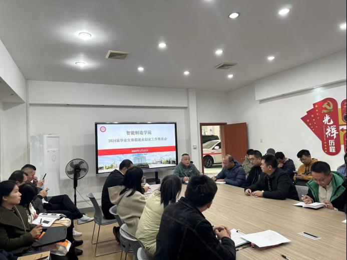 为扎实推进2024届毕业生就业创业工作,确保寒假期间就业创业工作不断线,1月15日上午,智能制造学院在17号楼党建会议室召开2024届毕业生寒假就业创业工作推进会,会议由学院党总支书记李扬新主持,全体教职工参加会议。