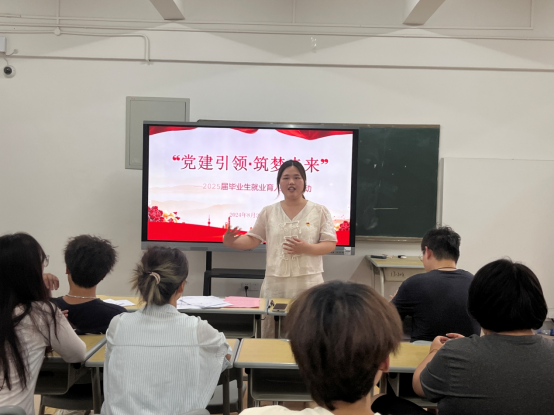比赛后,学生党支部书记张焜作了“党建引领,筑梦未来,助力毕业生高质量就业”主题分享,从明确就业方向、拓宽就业渠道、树立就业榜样、提升就业能力等方面进行就业指导。