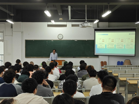 课堂上,李闽书记通过视频案例、数据图表和互动问答等形式,引导学生思考人口政策与产业发展的联动效应。学生们积极参与讨论,课堂氛围热烈。