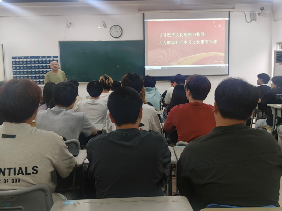 李扬新就“以习近平文化思想为指导,大力推动社会主义文化繁荣兴盛”专题内容,围绕推动新时代文化繁荣发展的根本遵循、文化事业繁荣发展呈现新气象、文化产业蓬勃发展等方面,向同学们讲述了推动文化繁荣发展的先决条件、内在要求以及方法论,引导同学们传承中华文化、推动文化产业蓬勃发展,为中国文化繁荣发展贡献自己的力量。