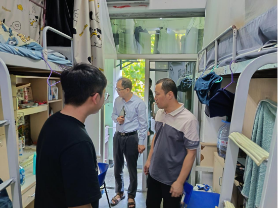 在检查走访过程中,学院领导老师重点检查了各宿舍安全用电、门锁上锁、贵重物品收储等情况,就同学们的假期计划和同学们进行亲切交流,提醒同学们增强安全防范意识,提升自我防护能力,安全和谐文明度过端午假期;提醒同学们在假期要合理安排作息,养成良好生活习惯。