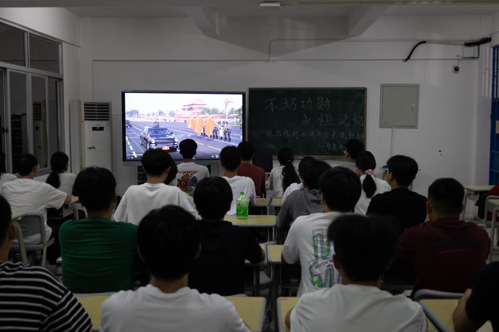 9月3日,智能制造学院组织学生干部在17号楼301教室集中收看了庄严盛大的九三阅兵。阅兵式上,英姿飒爽的解放军方阵、震撼人心的武器装备展示以及铿锵有力的口号声,让现场同学深受感染,爱国热情高涨。